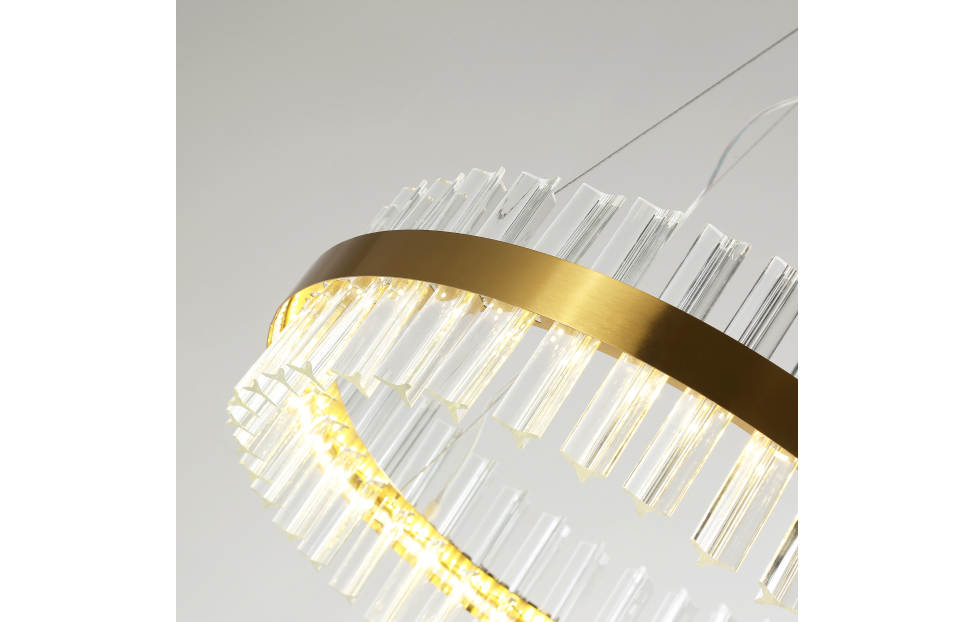 Коллекция Placerat выполнена в стиле модерн с использованием технологий LED. Модели облегчены за счет световых колец, которые крепятся к внутренней части каркаса. Вытянутые переливающиеся кристаллы встроены в соответствующие треугольные отверстия в каркасе. Светильники адаптируются по высоте.