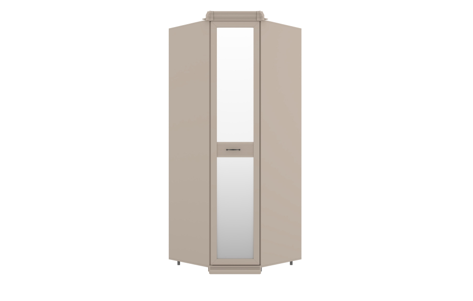 • Шкаф угловой с зеркальным фасадом, укомплектованный полками, планкой и штангой для одежды;