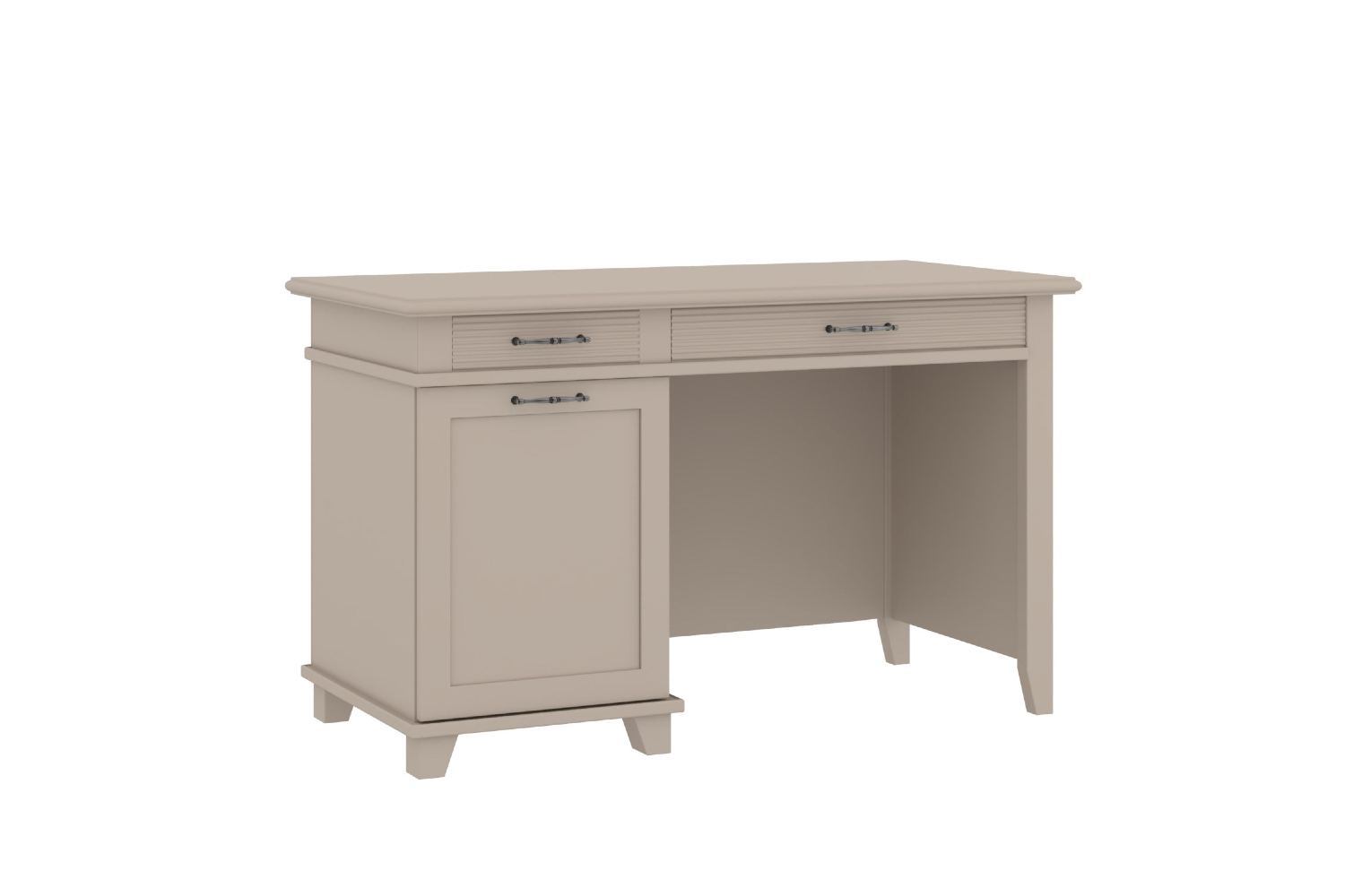 • Под столешницей — отделение с двумя выдвижными ящиками. На задней стороне стола — фальшпанели (с декоративными профилями), повторяющие внешний вид фасадов ящиков;