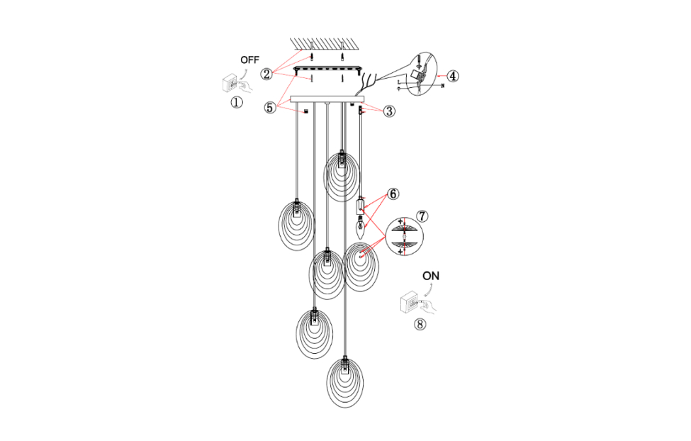 Купить Потолочную люстру Media D380*H400/1200 6*E14*60W в интернет-магазине мебели «Ангстрем»
