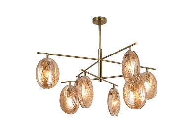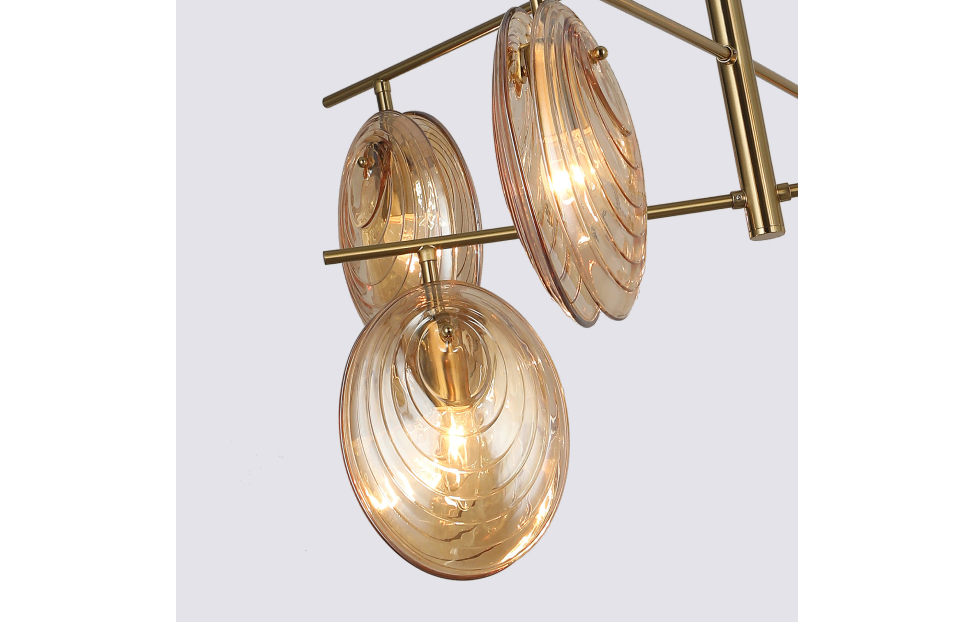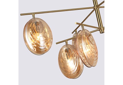 Коллекция светильников Media — это воплощение современного стиля. Светильники выполнены в цвете латуни, что придает им шарм и изысканность. Особенностью декора плафона является использование двух узорных стеклянных пластин, которые напоминают створки ракушки, внутри которых расположена сменная лампа Е14. Создается ощущение, что светильники декорированы стеклянными ракушками, что придает им неповторимый и оригинальный вид. Металлический каркас в цвете латунь, плафоны состоят из двух узорных стеклянных пластин янтарного цвета, цоколь E14, регулируемая высота.