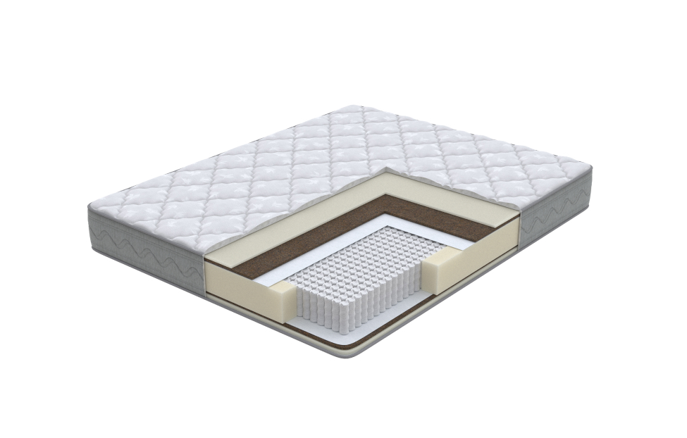 Би-кокос, Высокоэластичная пена Orto Foam, Неолатекс, Пружинный блок EVS 620 (16 см), Спанбонд, Эко ППУ (2 см)