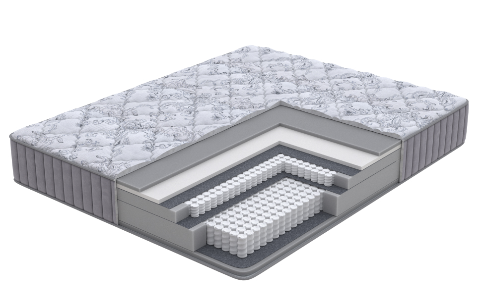Высокий матрас премиум класса с низкой жестостью сторон, обеспечивает неповторимый уровень комфорта. Благодаря современным материалам с функцией памяти, матрас способен подстраиваться под индивидуальные особенности вашего тела. В основе матраса уникальная система из двух блоков независимых пружин с повышенным ортопедическим эффектом. Нижний пружинный блок состоит из 512 независимых пружин, он обладает ортопедическими свойствами и берет на себя большую часть нагрузки. Верхний блок состоит из 1000 пружин на спальное место, которые равномерно распределяют нагрузку и обеспечивают точечную поддержку тела.