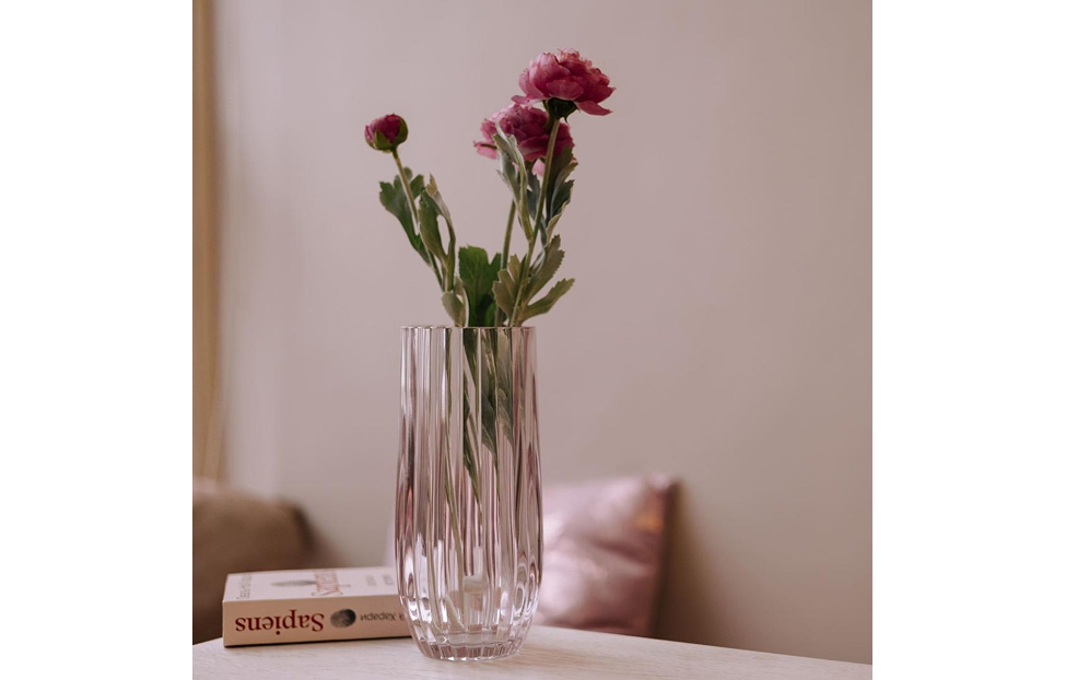 Стеклянная ваза для цветов придется по вкусу ценителям стиля и красоты. Может использоваться как самостоятельный элемент декора. Ваза смотрится необычно и современно. Украсит и наполнит красками любое помещение. Ребристая поверхность позволяет не только создать свой собственный уникальный интерьер, но и обеспечивает дополнительную прочность. В ней прекрасно смотрятся большие букеты, единичные цветы, сухоцветы или декоративные растения.