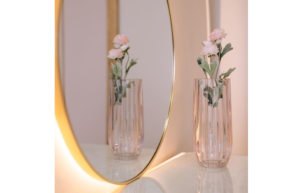 Купить Декоративную вазу Fancy79 из рельефного стекла, пудровый в интернет-магазине мебели «Ангстрем»