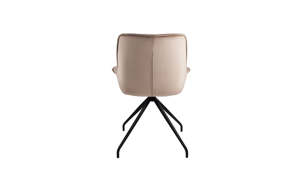 Стул-кресло Сохо с поворотным механизмом прекрасно впишется в любой интерьер и комнату. Такой стул можно использовать как в качестве обеденного стула, так и в виде рабочего кресла к письменному столу.Обивка из велюра в актуальном бежевом оттенке гармонирует с металлическими ножками черного цвета. Такие стулья украсят современные интерьеры, а также пространства в стиле эклектики.