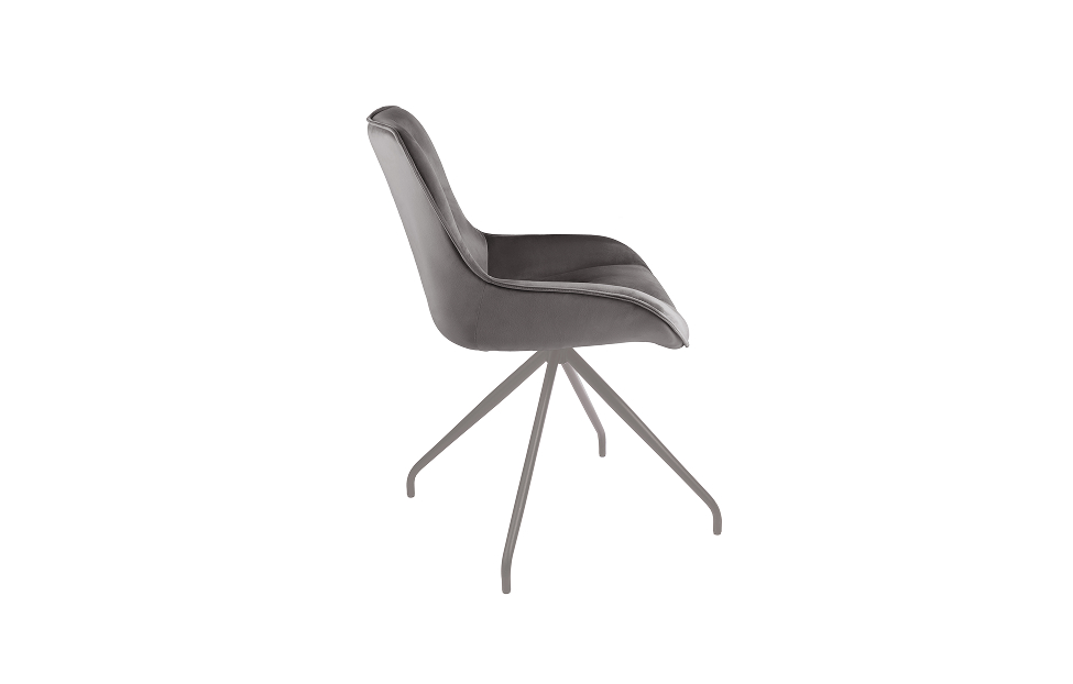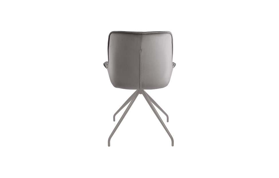Стул-кресло Сохо с поворотным механизмом прекрасно впишется в любой интерьер и комнату. Такой стул можно использовать как в качестве обеденного стула, так и в виде рабочего кресла к письменному столу. Обивка из велюра в актуальном сером оттенке прекрасно гармонирует с металлическими ножками серого цвета. Такие стулья украсят современные интерьеры, а также пространства в стиле эклектики.