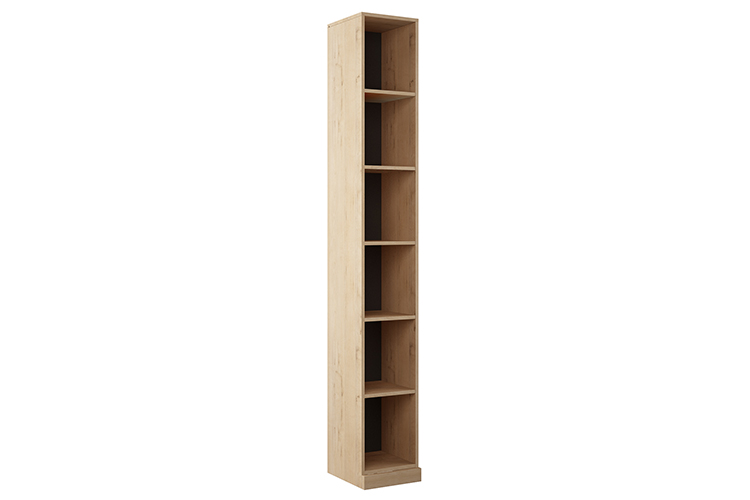 Компактный узкий стеллаж дополнит обстановку в стиле эко, лофт, минимализм, кантри, классика, прекрасно впишется в прихожую или малогабаритную гостиную, поможет оформить рабочий кабинет или детскую комнату. Основной цвет корпуса «дуб бунратти» подчеркивает контрастный оттенок задней внутренней стенки «черный графит». Лаконичный дизайн и небольшие размеры непременно порадуют приверженцев аскетизма, любителей свободного пространства. На высоких полках без труда поместятся книги, документы, канцелярию, аксессуары, награды.