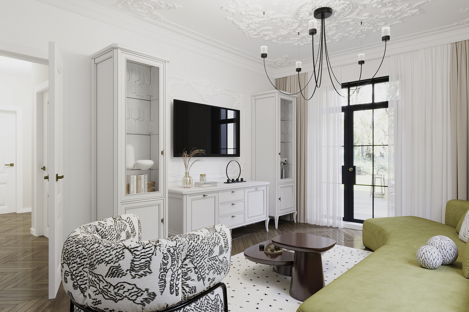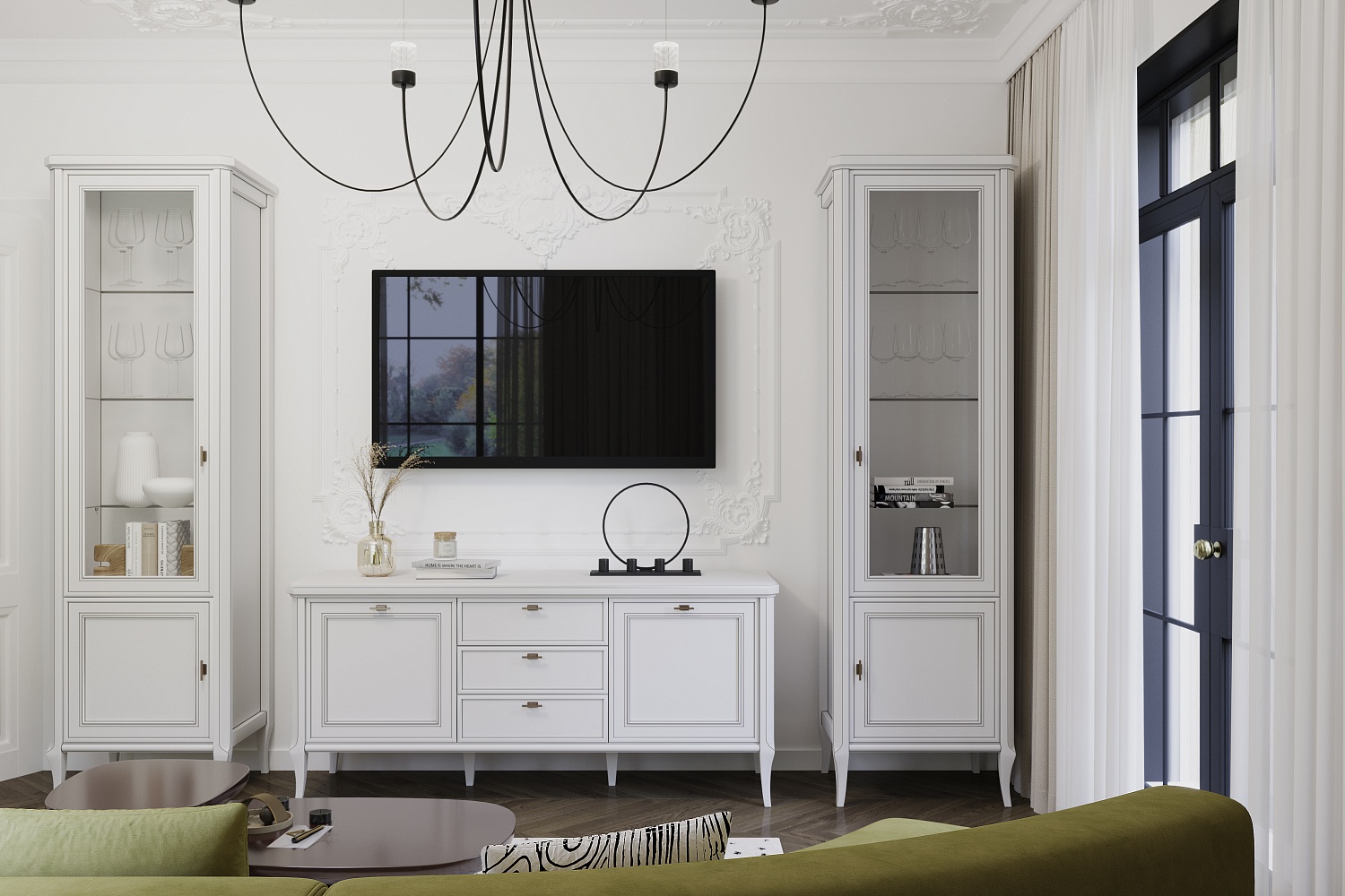 – описание: цвет бело-серый, размер 214.8x287x50.5 см, назначение для гостиной, стиль неоклассика.
