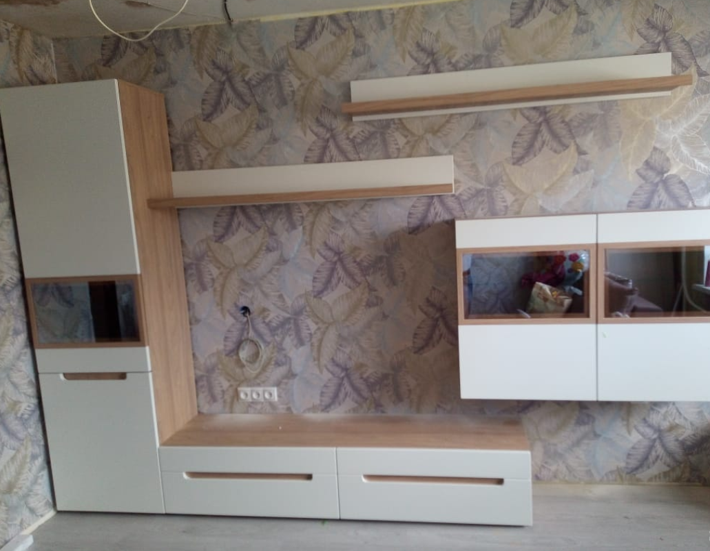 - Для гостиной используется крепежная фурнитура и механизмы ведущих производителей. Такая фурнитура позволит мебели прослужить дольше, не требуя частого ремонта. Петли оснащены доводчиками для более плавного закрывания дверей;