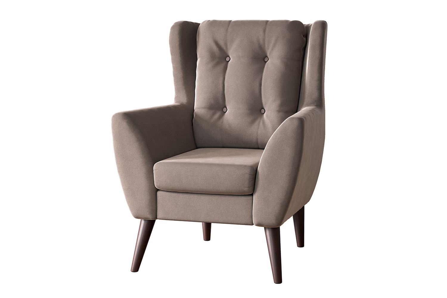 Модель с ушами, прообразом для которой послужило вольтеровское кресло, подойдет для оформления рабочего кабинета, гостиной или домашней библиотеки в стиле сканди, лофт или классика. Колоритные боковые выступы спинки символизируют уют и комфорт. Каретная стяжка и бархатистый мебельный велюр с матовой фактурой завершают традиционный английский дизайн. Изящные, утонченные ножки в цвете венге гарантируют устойчивость конструкции и словно приглашают усаживаться поудобнее.