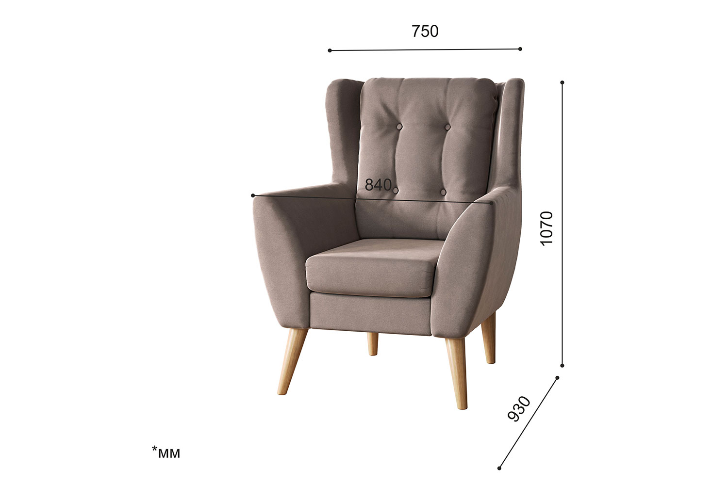 Модель «wing chair» выглядит изысканно и элегантно. Высокая, слегка изогнутая спинка и удобные подлокотники обеспечивают комфортную посадку. Светлые скошенные ножки из массива дерева контрастируют с основным цветом мебели и органично выделяются в конструкции. Обтекаемые формы и выступающие «уши» делают кресло подходящим для интерьера в английском стиле, особенно удачно кресло будет смотреться рядом с камином. Минималистичный дизайн позволяет использовать модель и для оформления обстановки в стиле лофт или сканди, гостиной, домашней библиотеки и рабочего кабинета.