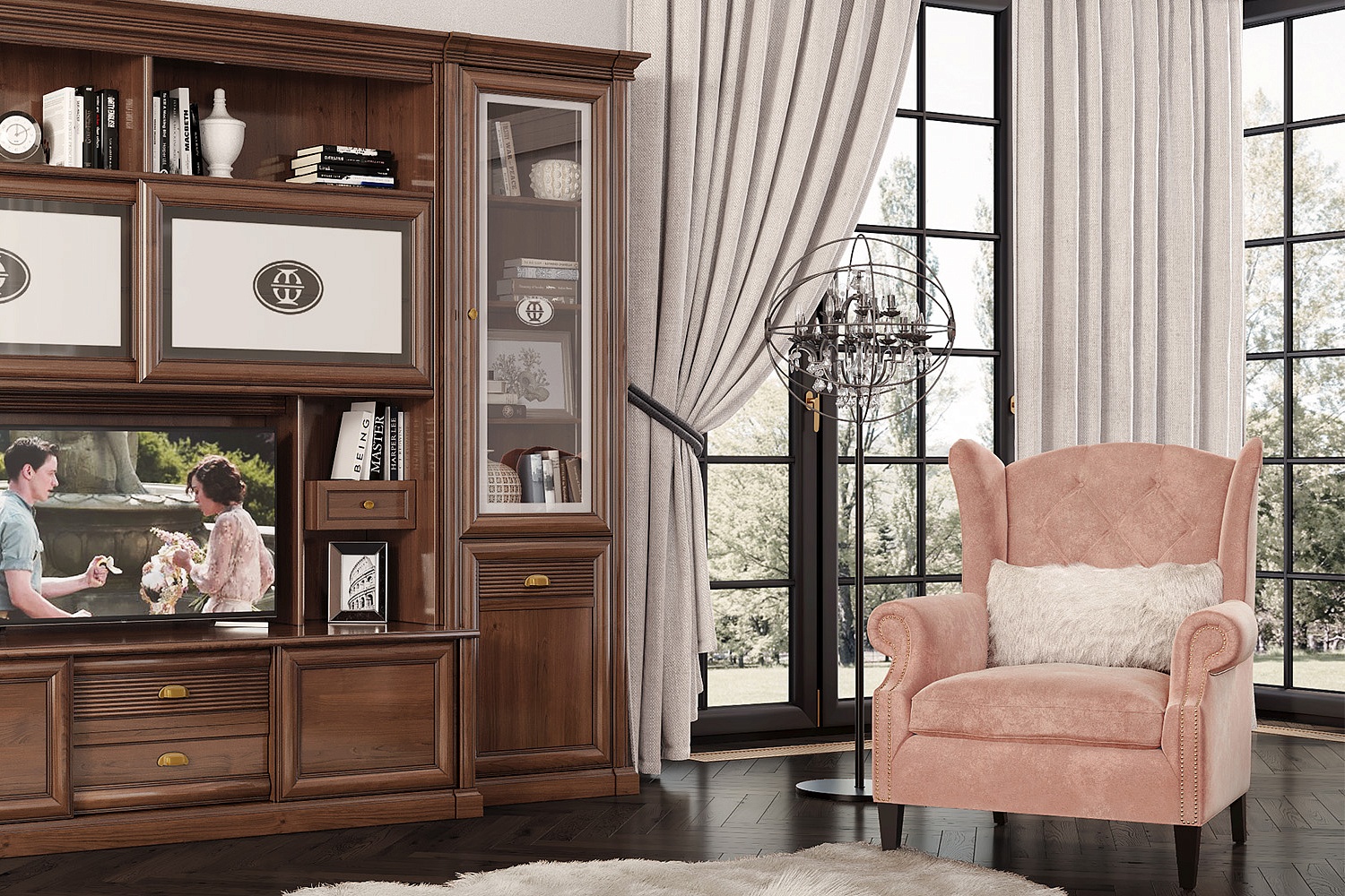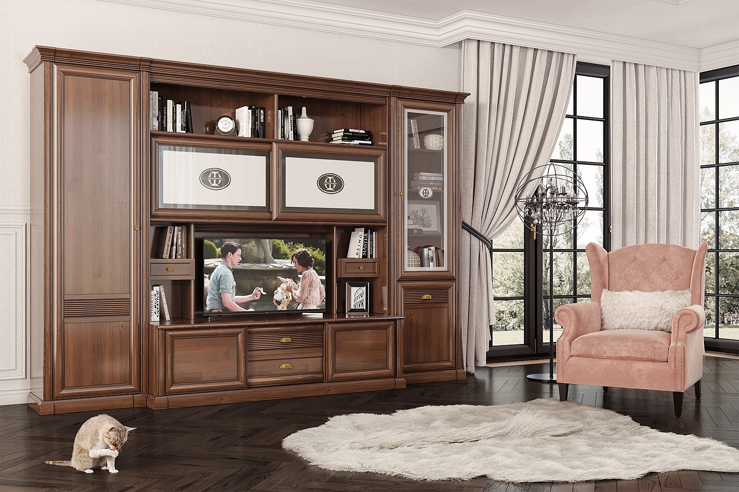- Отделка фасадов выполнена итальянским шелковисто-матовым лаком и патиной (эффект состаренного дерева);