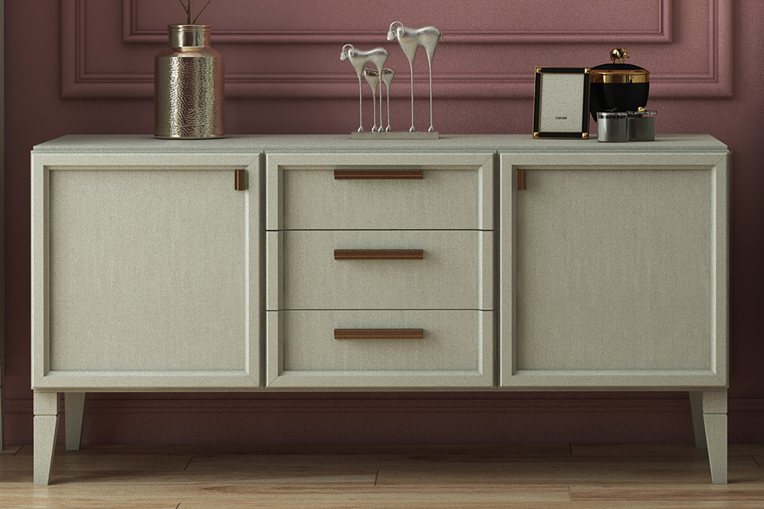 - Тумба с тремя ящиками и двумя дверцами - имеет два отделения со шпонированной внутренней полкой за двумя распашными дверцами;