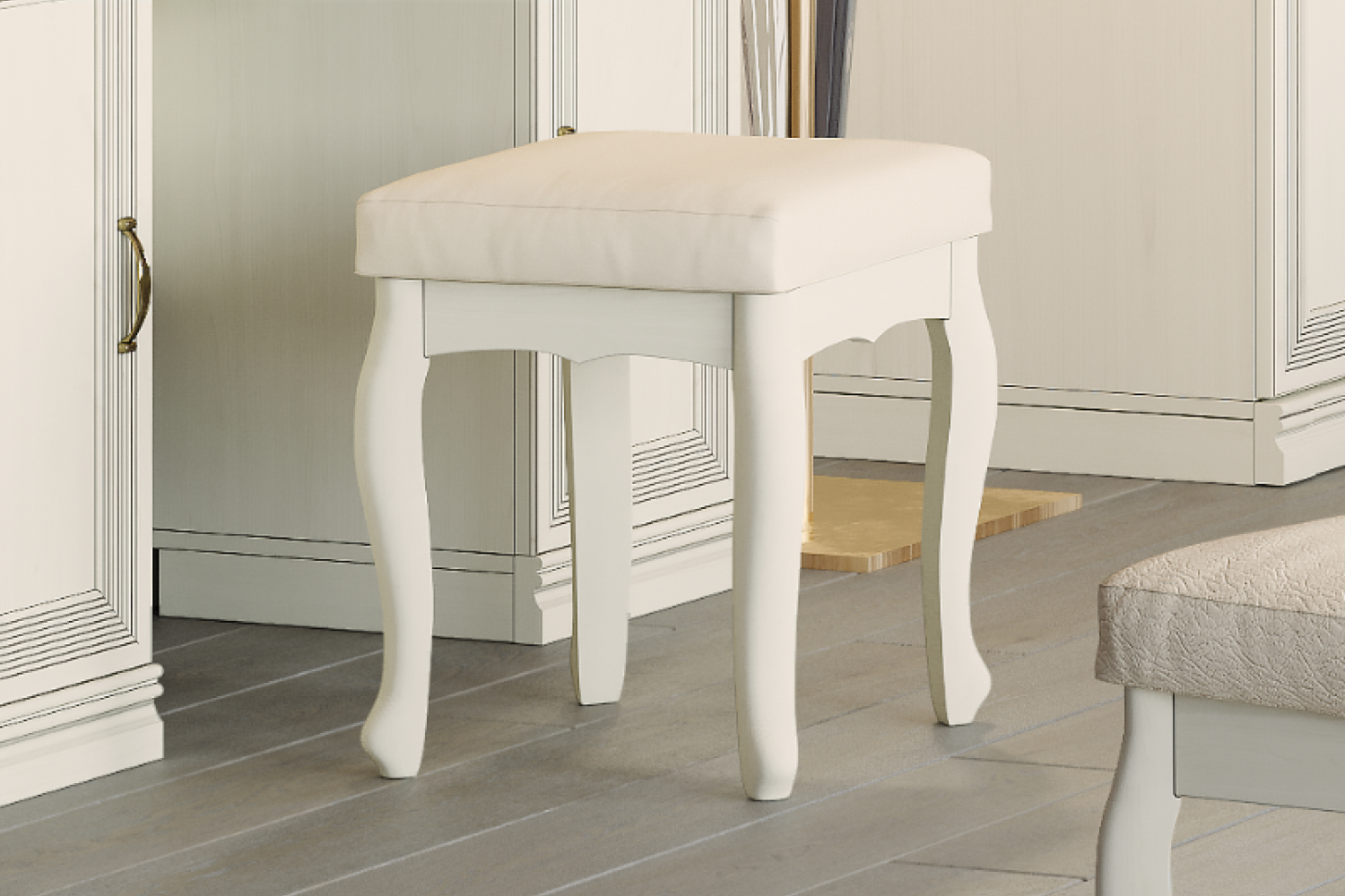 Изделие впишется в интерьер в стиле классика, прованс, кантри. Фигурные ножки, полукруглые боковины, сиденье с закругленными углами в сочетании со светлой отделкой выглядят роскошно и стильно. Опоры в цвете валенсия гармонируют с обивкой молочного оттенка. Ножки выполнены из массива бука, в качестве обивочного материала используется кожзаменитель.