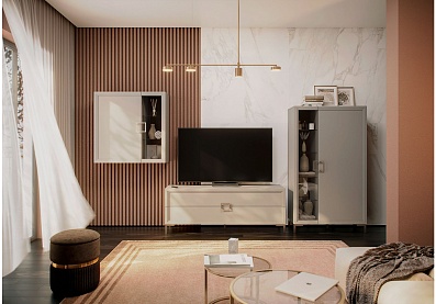 Шкаф настенный Дольче Кашемир серый, Трюфель коричневый