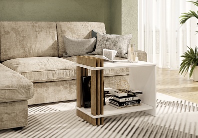 Стол Троя журнальный Дуб, Белый ЛДСП